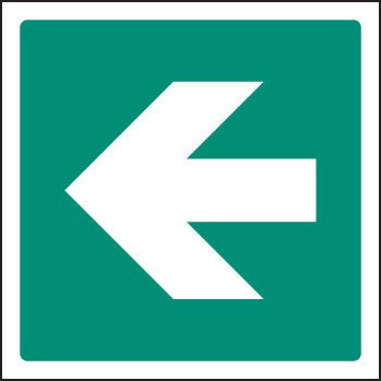 Emergency escape signs like this 180° arrow guide you from your current location through a safe escape route to the assembly area, ensuring clear direction in emergencies.