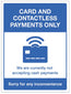 This sign is essential for retail stores and businesses to inform customers of payment protocols, emphasizing the acceptance of card and contactless payments only. It helps to streamline transactions and reduce physical contact, aligning with updated health and safety measures.