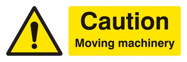 This hazard sign is used to alert individuals to the presence of moving machinery, helping to prevent accidents and ensure workplace safety.