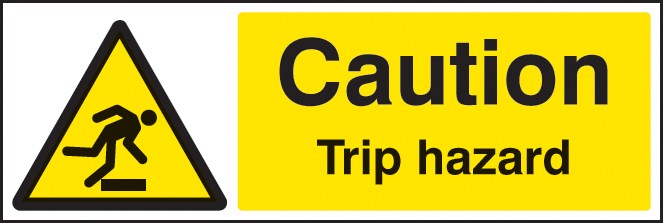 This hazard sign is designed to alert individuals to potential trip hazards, ensuring safety and reducing the risk of accidents. Clear and visible, it helps to prevent injuries by warning of dangerous areas where tripping may occur.