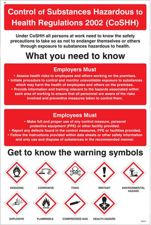 This poster provides essential information and advice on regulations and best practices for handling hazardous substances in the workplace. It helps ensure compliance with safety standards and promotes proper handling procedures.