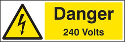 This warning sign is designed to inform and alert individuals to potential electrical hazards involving 240 volts. It is crucial for ensuring safety in environments where electrical risks are present.