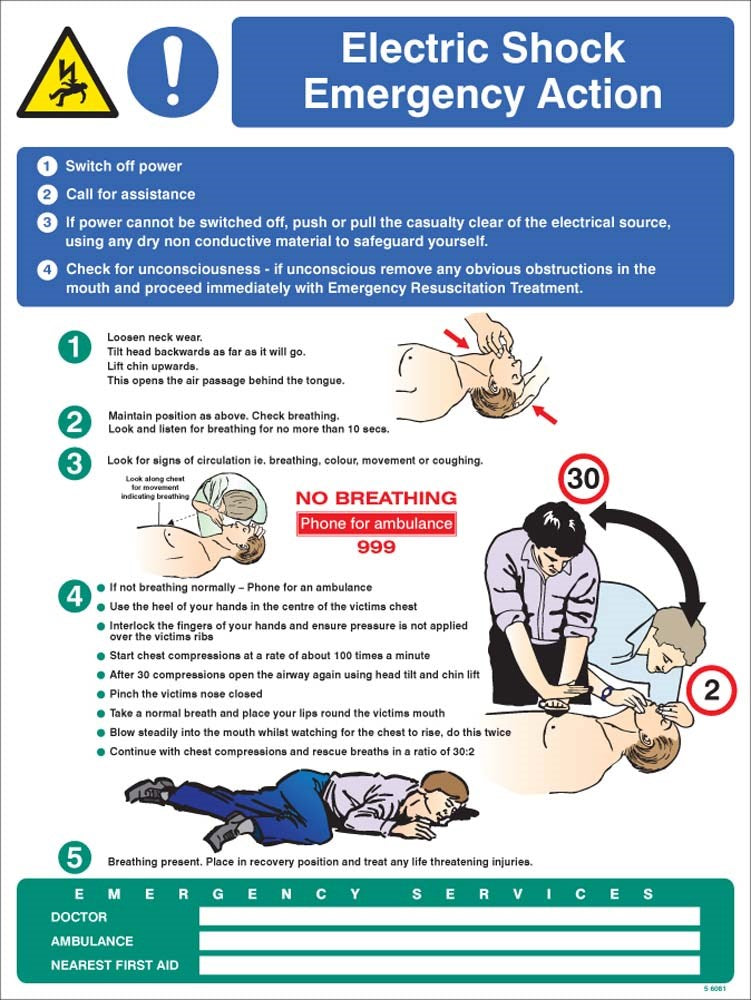 - Clear Instructions: Provides clear, concise emergency treatment advice for electric shock incidents.