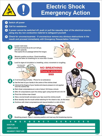 Ideal for workplaces, construction sites, and any environment where electric shock risks are present. This panel is a must-have for enhancing safety measures and ensuring that first aiders can respond promptly and effectively.
