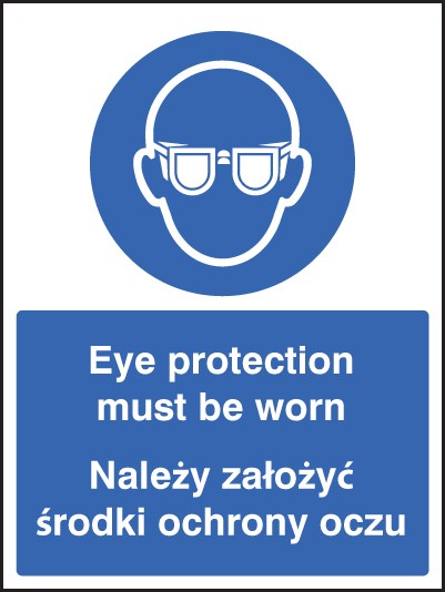 - Bilingual Messaging: Clearly displays the requirement for eye protection in both English and Polish, making it accessible to a broader audience.