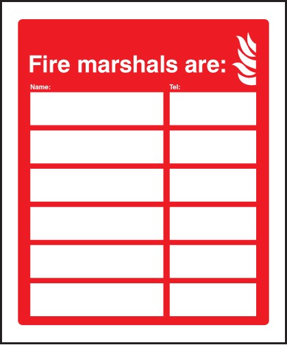 Use this sign to inform staff and visitors who their dedicated- Fire warden or marshal is.