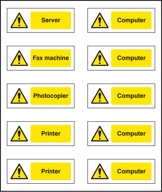 Sheet of 6 self adhesive labels to identify plugs for office equipment