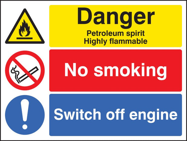 Petroleum Spirit/No Smoking/Switch Off Engine