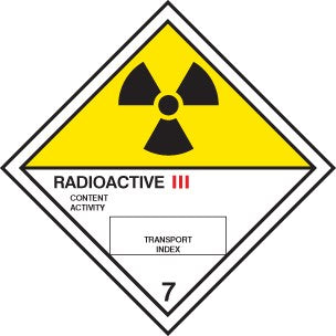 UN regulations (including ADR, IATA and IMDG) stipulate that all dangerous goods must be clearly identified. Diamonds (other than those of class 7 radioactive status) and the insert of any text (other than UN class number) below the symbol is to be confined to particulars indicating the nature of the risk and precautions to be followed during handling of them. Text to signify the nature of the risk is optional.