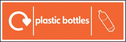 This sign is designed to clearly identify bins and areas designated for recycling plastic bottles, promoting effective waste management in compliance with WRAP (Waste & Resources Action Programme) guidelines.