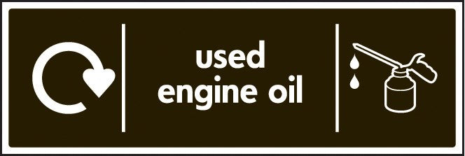 This sign is specifically designed to identify bins and areas designated for the recycling of used engine oil, supporting your recycling programme in compliance with WRAP (Waste & Resources Action Programme) standards.